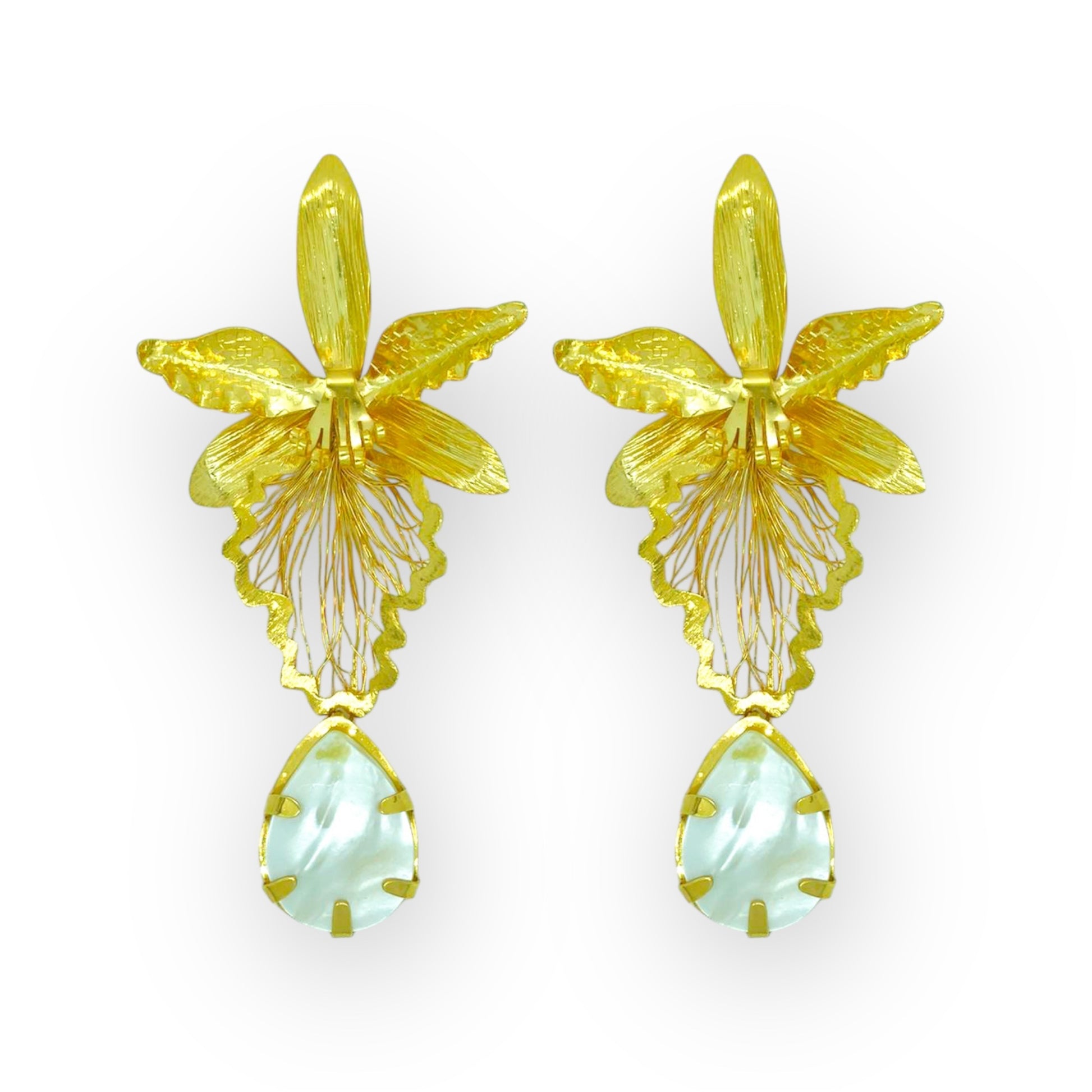 Stunning Handmade Earrings, Gold dipped with a removable pendant made of mother of shell.